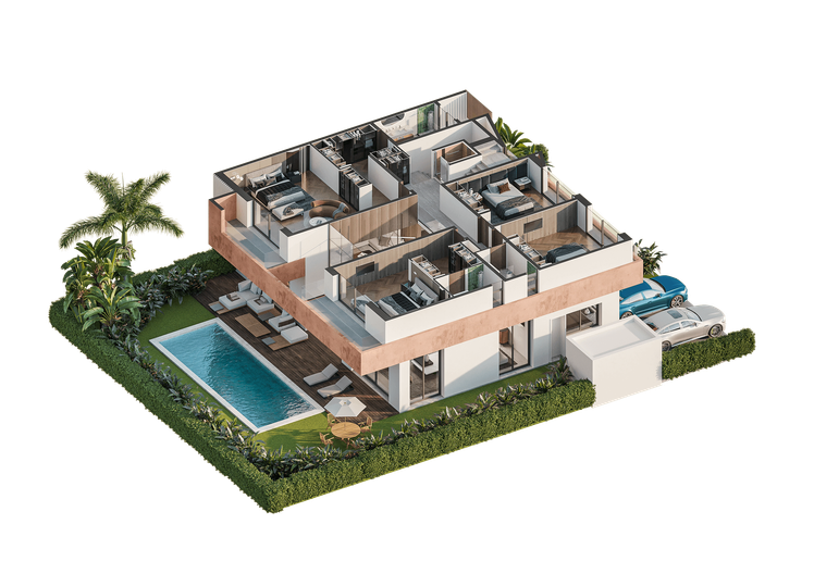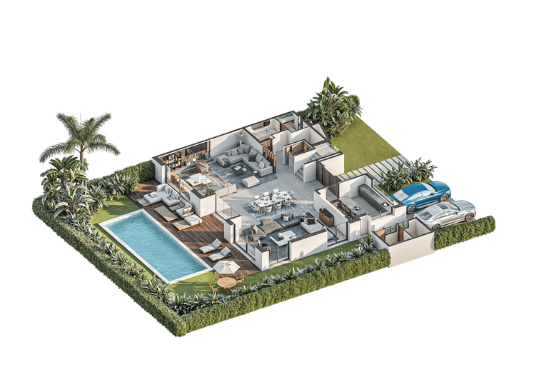 Plus compacte tout en restant spacieuse, la Villa ZIRI développe environ 368 m² habitables. Son architecture privilégie la clarté des lignes...